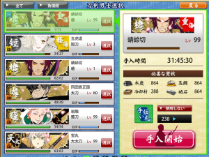 【とうらぶ】今のところここが手入れで喰う資源の上限かな…