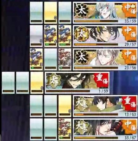 江雪Lv99、三日月Lv98、鶴丸Lv97、和泉守Lv95、石切丸Lv99、太郎Lv95 で6-2クリアできたからべつに6面専用に短刀を育てることはないかなと思ってる…なお泥はなし