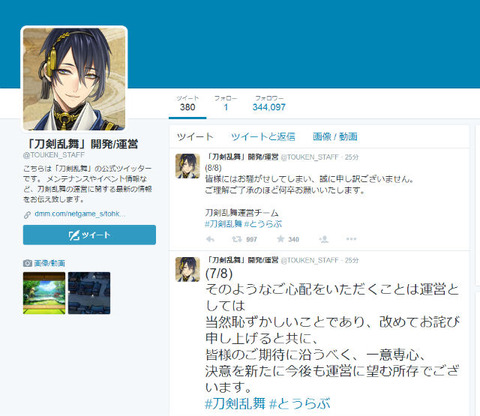公式Twitterで報告