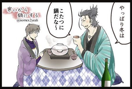 2人炬燵を囲んで鍋を楽しむようですが…