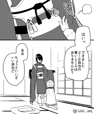 【刀剣乱舞】三日月爺の着付けを行う前田くんに誉を【漫画】