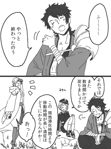 遠征先での用事を終えて本丸へ戻ろうとしている遠征部隊