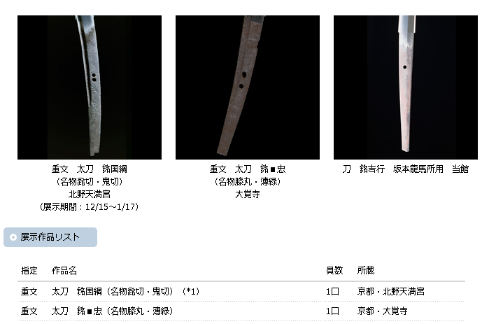 ⇒京都国立博物館 - 特集陳列 刀剣を楽しむ-名物刀を中心に-