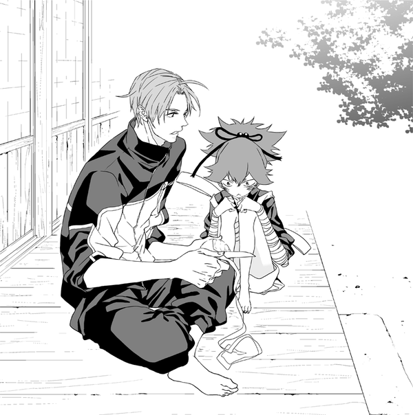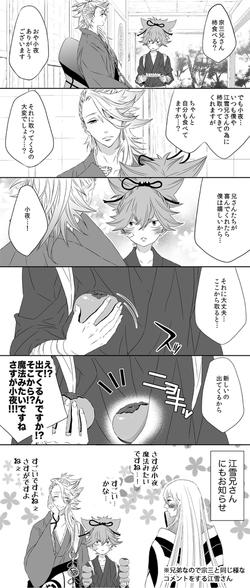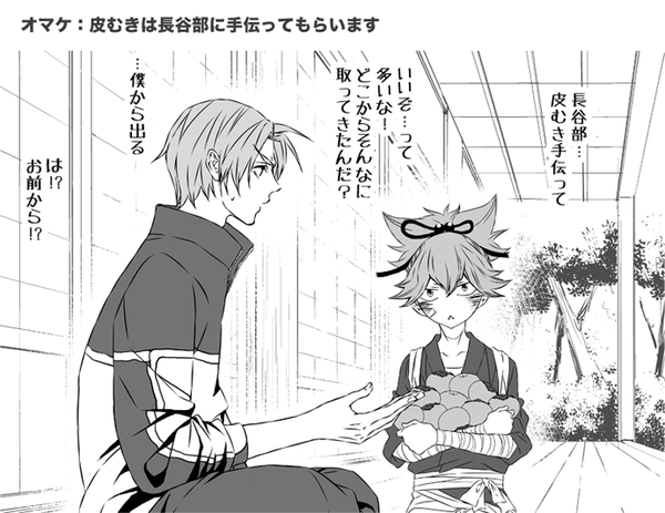 長谷部と小夜落描き。柿の皮切れさせずに剥くの上手な長谷部。 http://t.co/02knbByqIZ