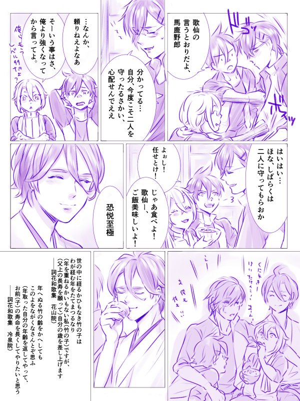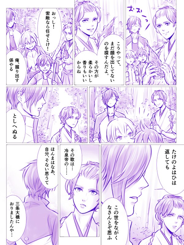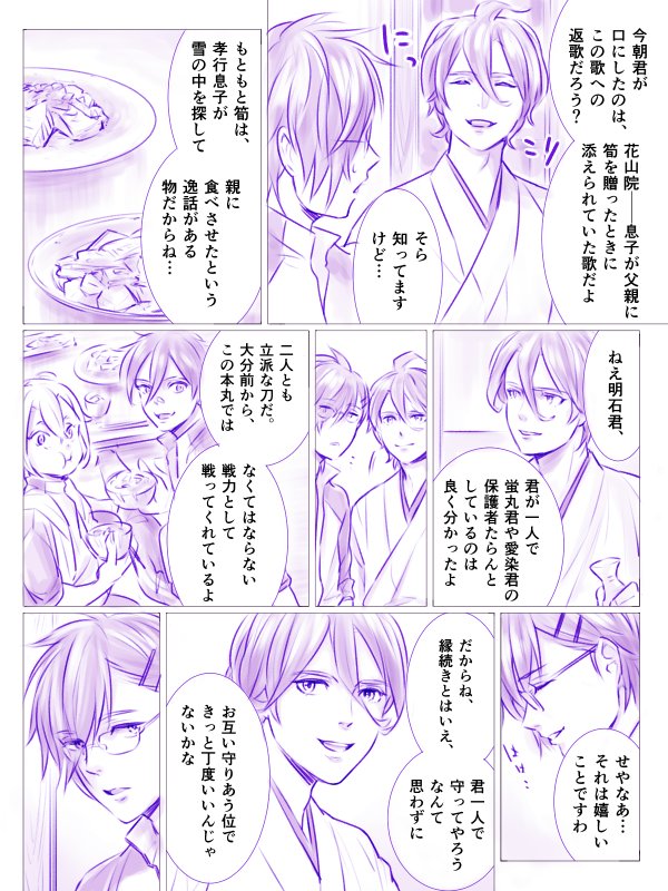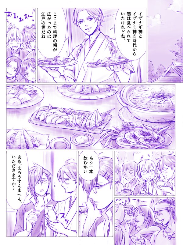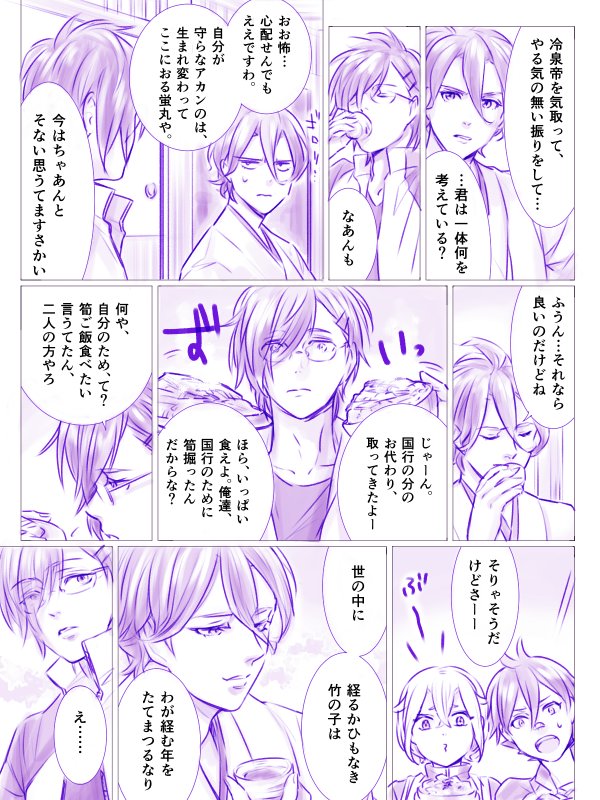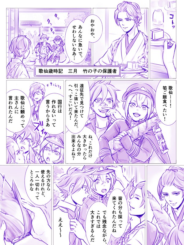 大変遅くなってすみません!3月は筍料理と来派の子たちのお話です!バックナンバーは「歌仙歳時記」で画像検索いただけるとご覧になれます お話:ミカエリス(@michela1126)絵:さとろう https://t.co/bitUquadrV