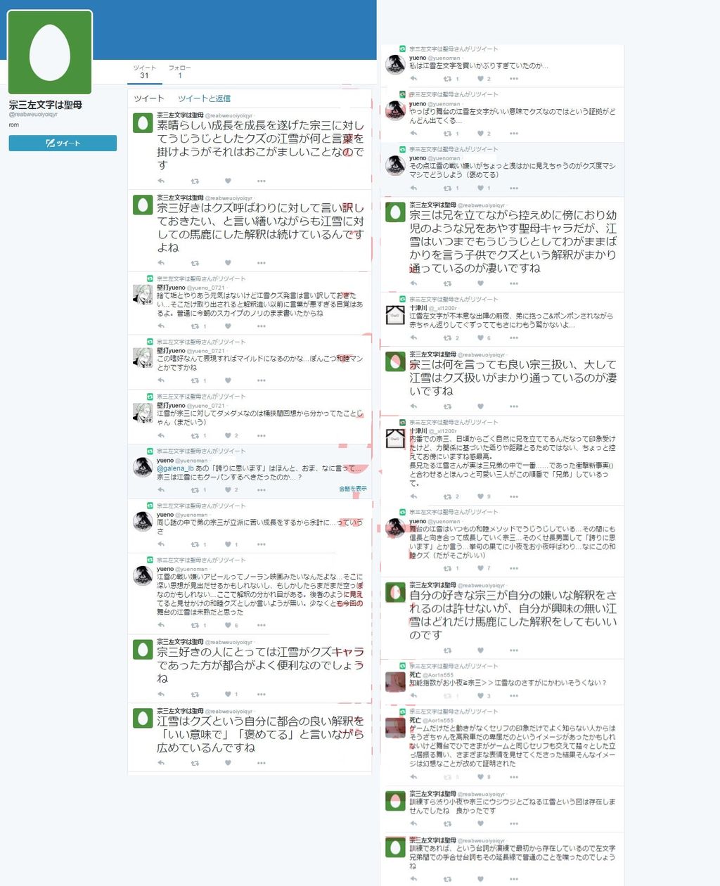 左文字界では江雪ファンの多くが落胆する中、宗三受者による江雪sageが加速し