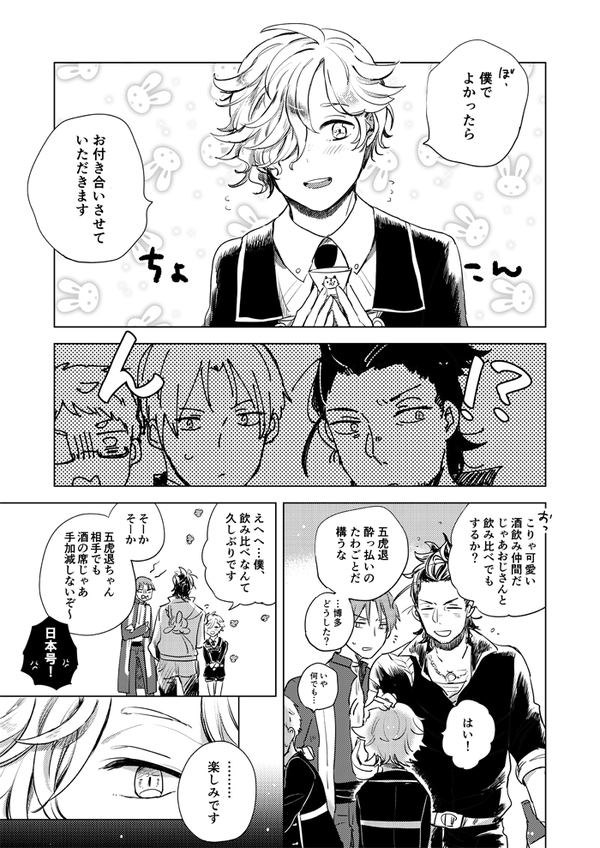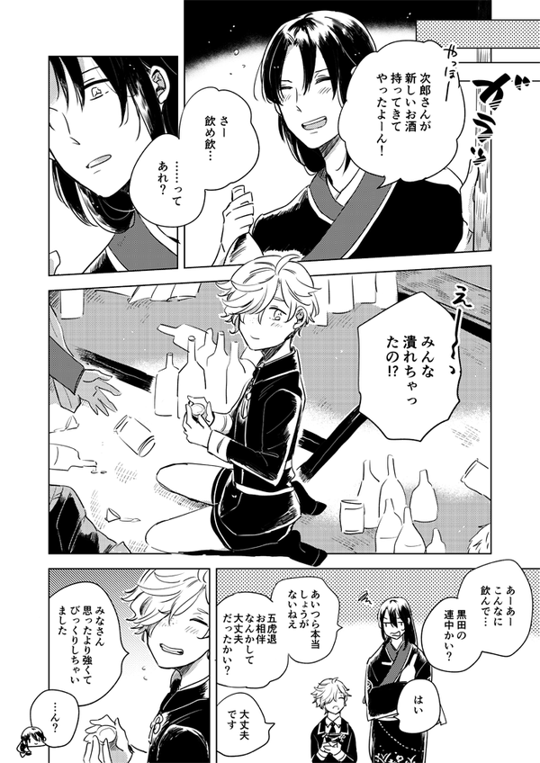 【刀剣乱舞】五虎退くんが酒豪黒田の飲み比べに付き合った結果…【漫画】