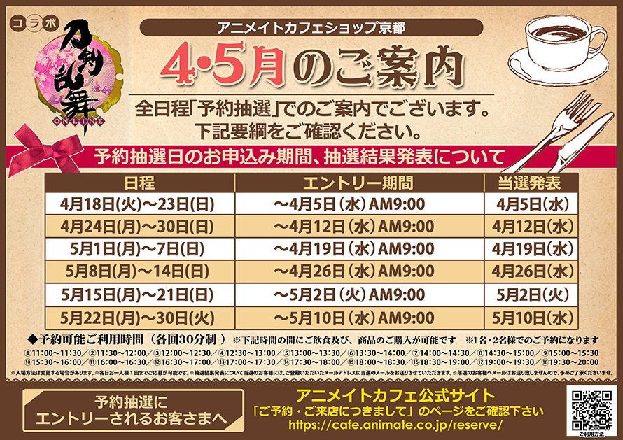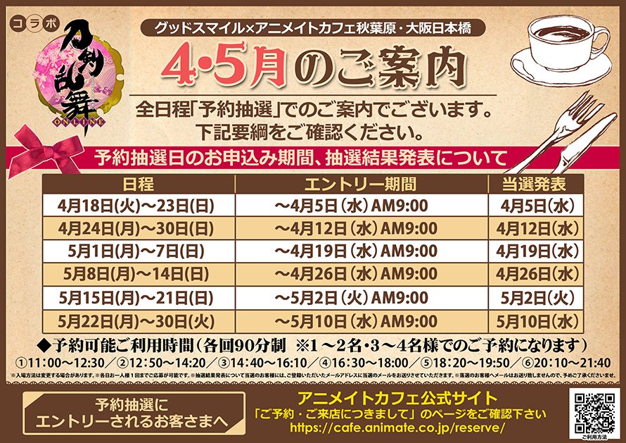 ②【刀剣乱舞-ONLINE- グッドスマイルアニメイトカフェ秋葉原・大阪日本橋・カフェショップ京都】ただいま抽選予約の受付中!皆様のご予約お待ちしております♪ご予約はコチラ⇒ https://t.co/m3XQs17JVY… https://t.co/FN4LhUoxPG