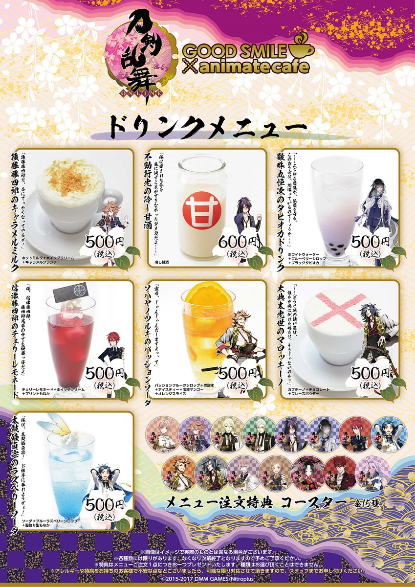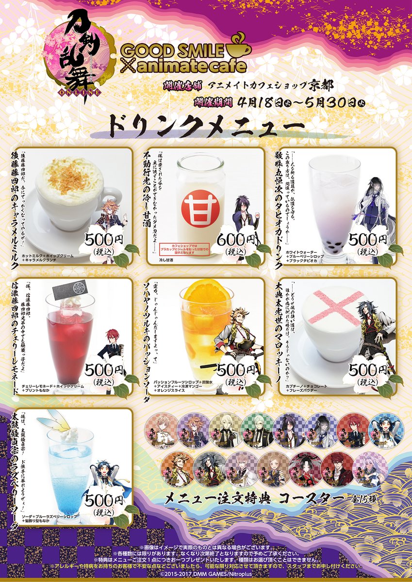 ①【刀剣乱舞-ONLINE- グッドスマイルアニメイトカフェ秋葉原・大阪日本橋・カフェショップ京都】お待たせしました!コラボメニュー&限定グッズの公開!カフェ描き起こし初となるキャラクターの限定グッズも登場! #刀剣乱舞… https://t.co/aSf4jrt65t