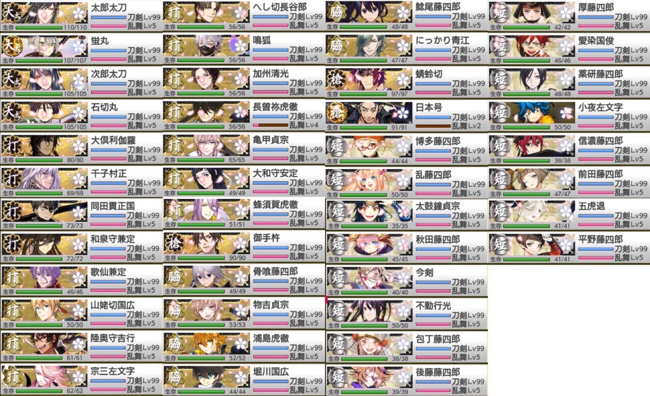 刀剣乱舞-ONLINE-(とうらぶ)の2019年11月時点で実装の極男士をカンストした審神者