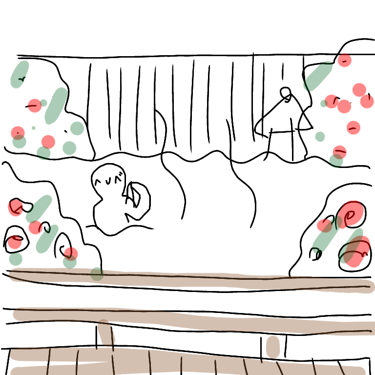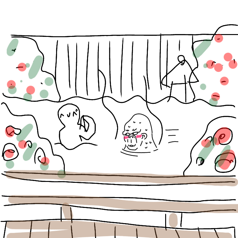 来年は椿のとこに柚子の木になってそこが温泉になった景趣