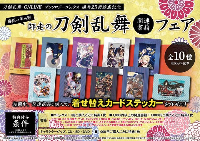 『刀剣乱舞-ONLINE-アンソロジーコミック4コマらんぶっ』2巻の発売で、刀剣乱舞公式アンソロジーが通巻25冊を達成!。アニメイトでは12/14からフェアを開催します。著名な漫画家の先生による刀剣男士の着せ替えカードステッカーをプレゼントいたします! 詳細はこちら→ bit.ly/2qmc1ak pic.twitter.com/cmkT3vCWKk