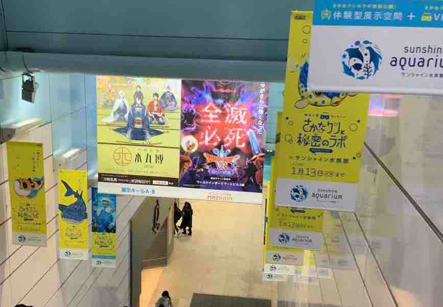 東急ハンズ池袋店付近から地下へと続く「サンシャインシティ地下通路」付近にも本丸博の広告が掲出されております。写真