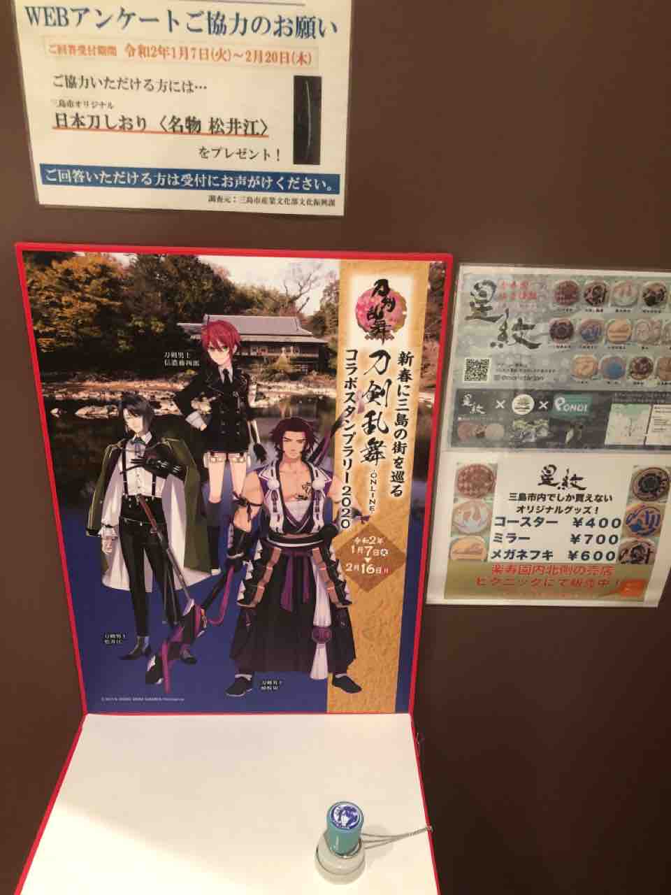 2020年の三島市と刀剣乱舞-ONLINE-(とうらぶ)のコラボイベントの様子です。