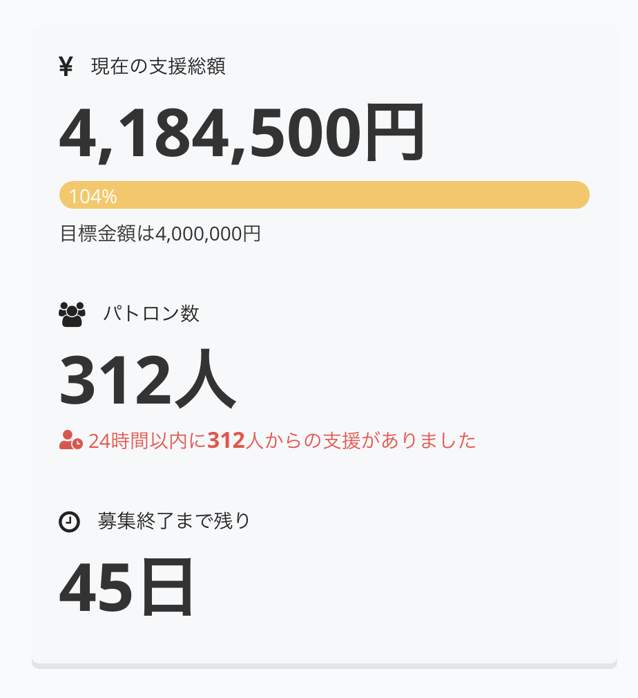 クラウドファンディングは目標金額が達成したら終了ってわけではありません。まだ申し込み可能です。