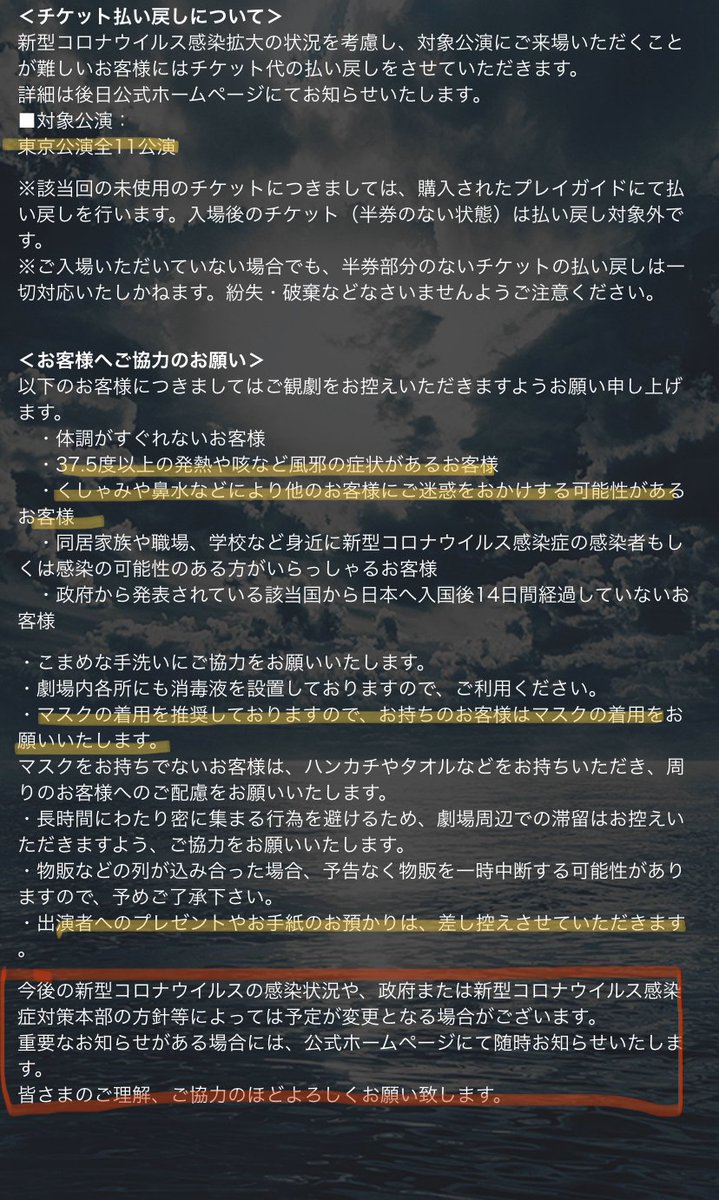 出来ればマスクを着用してのご観劇を私も願っておりますので当日劇場でお渡しできればと存じます。