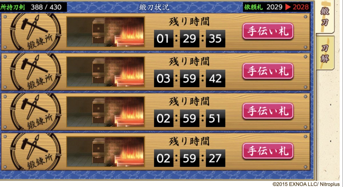 ていうか頼むから鍛刀イベのピックアップ対象専用の鍛刀時間作ってお願いよおおおおおおおわん