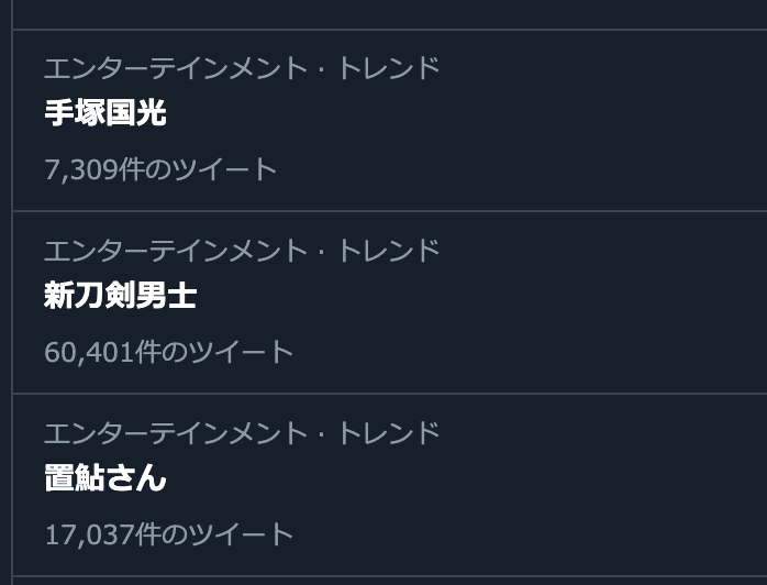 手塚国光と日光一文字がトレンドに並ぶ世界に来てしまったらしい pic.twitter.com/QYg3HSTeXz