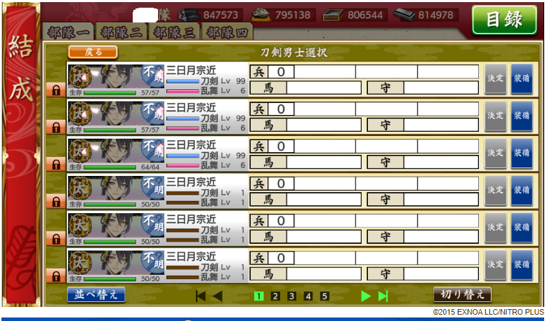 全本丸三日月配布と強制刀帳順表示だったんだね