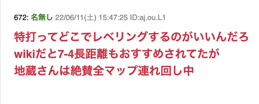 基本はカンストに経験値積むとこだと思ってる(短脇か高lv極打のサポ必須)