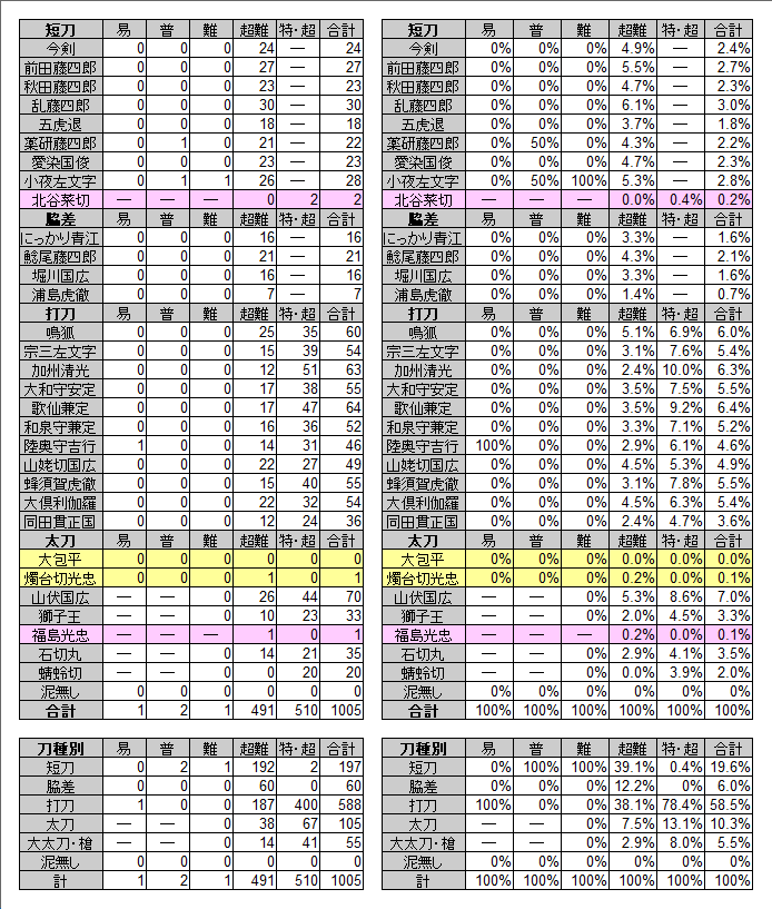 石切丸多いなと思ったら超難泥率が打刀並で草