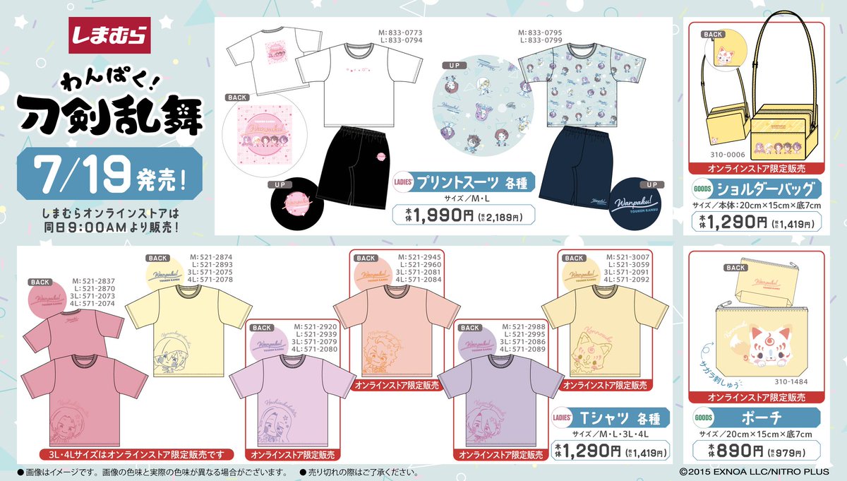 刀剣乱舞ONLINE(とうらぶ)のグッズシリーズの1つ「わんぱく刀剣乱舞」としまむらのコラボグッズ販売決定!7/19(水)から店舗としまむらオンラインストアで販売開始